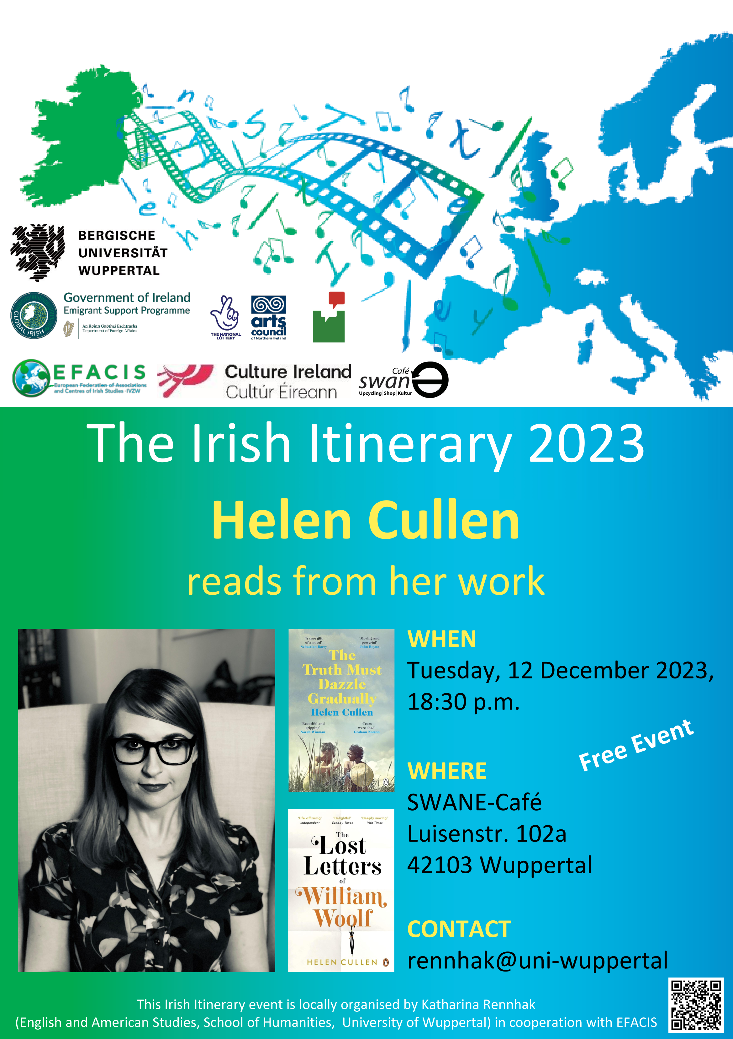 Writer Helen Cullen will be visiting the University of Wuppertal on December 12th. More information can be found on the University's website.