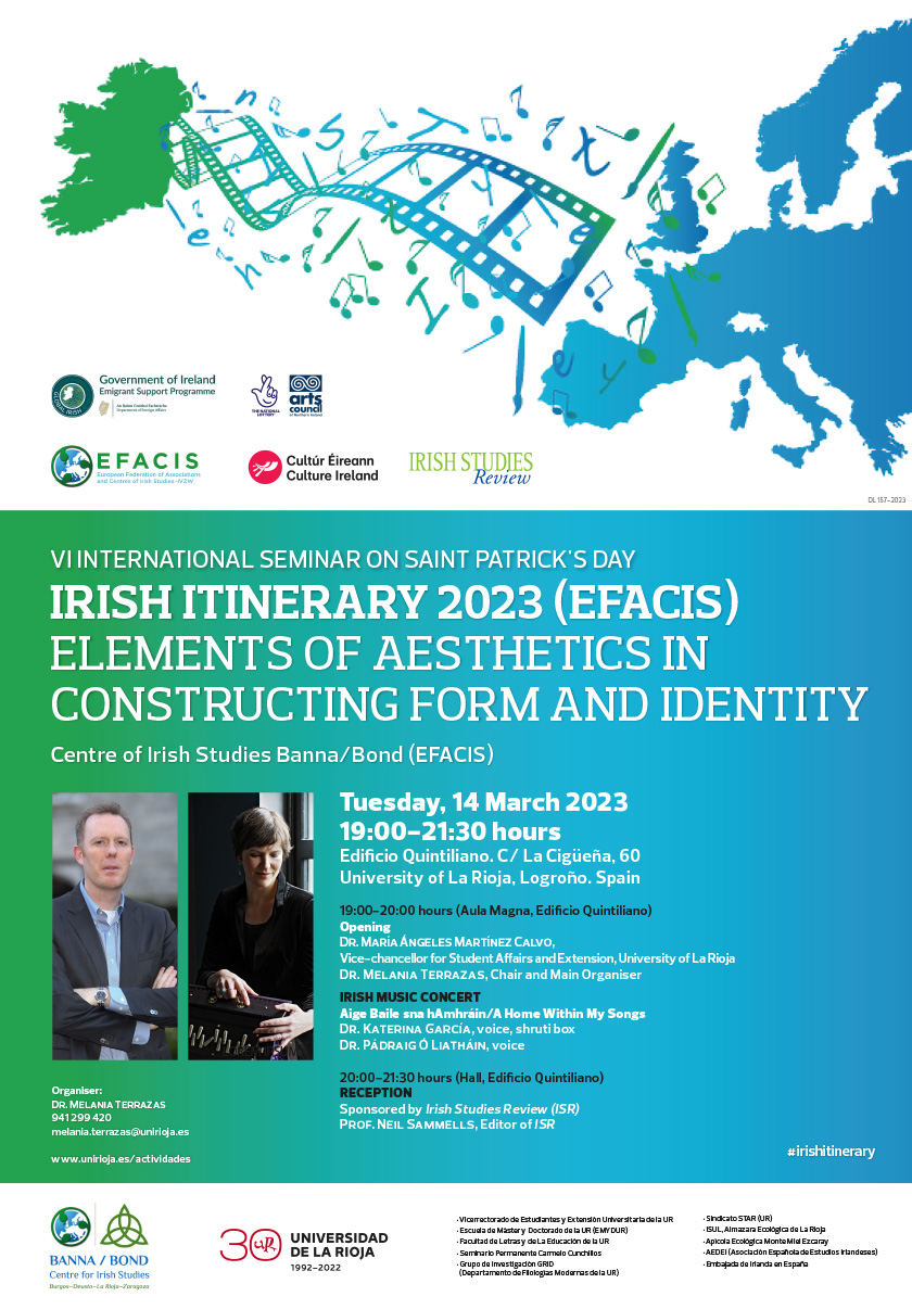 Musicians Kateřina García and Pádraig Ó Liatháin will be performing at the University of La Rioja on 14 and 15 March 2023. This event is part of the VI International Seminar on Saint Patrick's Day 2023.